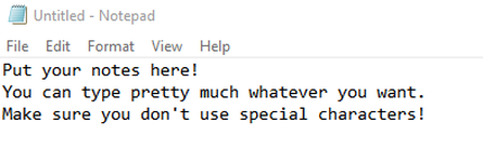 Open up Notepad on your computer (it comes preinstalled on Windows). Type whatever you would like to store into the text document.