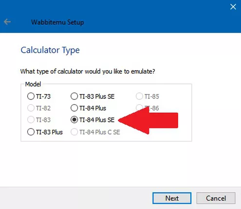 Step Three: Wabbitemu should now ask what Calculator Type you would like to emulate. I would recommend choosing the TI-84 Plus SE.