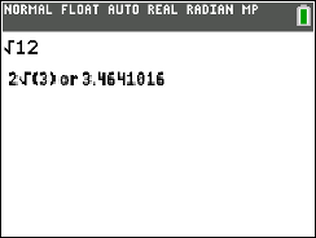 For example, if you entered the number 12, the program would return “2√ ̅3 or 3.4641016”.
