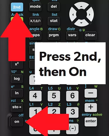 To turn your calculator off, press the “2nd‘ button in the top left the corner, and then the “On” button in the lower left corner.